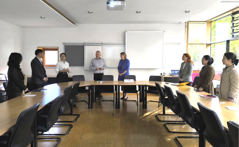 访问德国兰茨胡特应用技术大学期间,代表团受到了校长Fritz Poernbacher教授的热烈欢迎,双方就近年来学校发展成就、专业设置、国际交流与合作、科学研究、校企合作和知识与技术转移、人力资源发展、人才培养、运行经费等情况进行了友好交流和经验分享,双方表示要保持合作不中断,并就开设中德合作创新班(共同培养双方拔尖学生)、聘请德方客座教授开展语言课和专业课授课、师资培训、聘请德方教授加入我校专家服务团和专家咨询委员会,中德合作推进校企合作和开展科学研究等有待拓展的合作内容进行了深入、细致的研讨,双方一致同意尽快落实具体合作事宜。