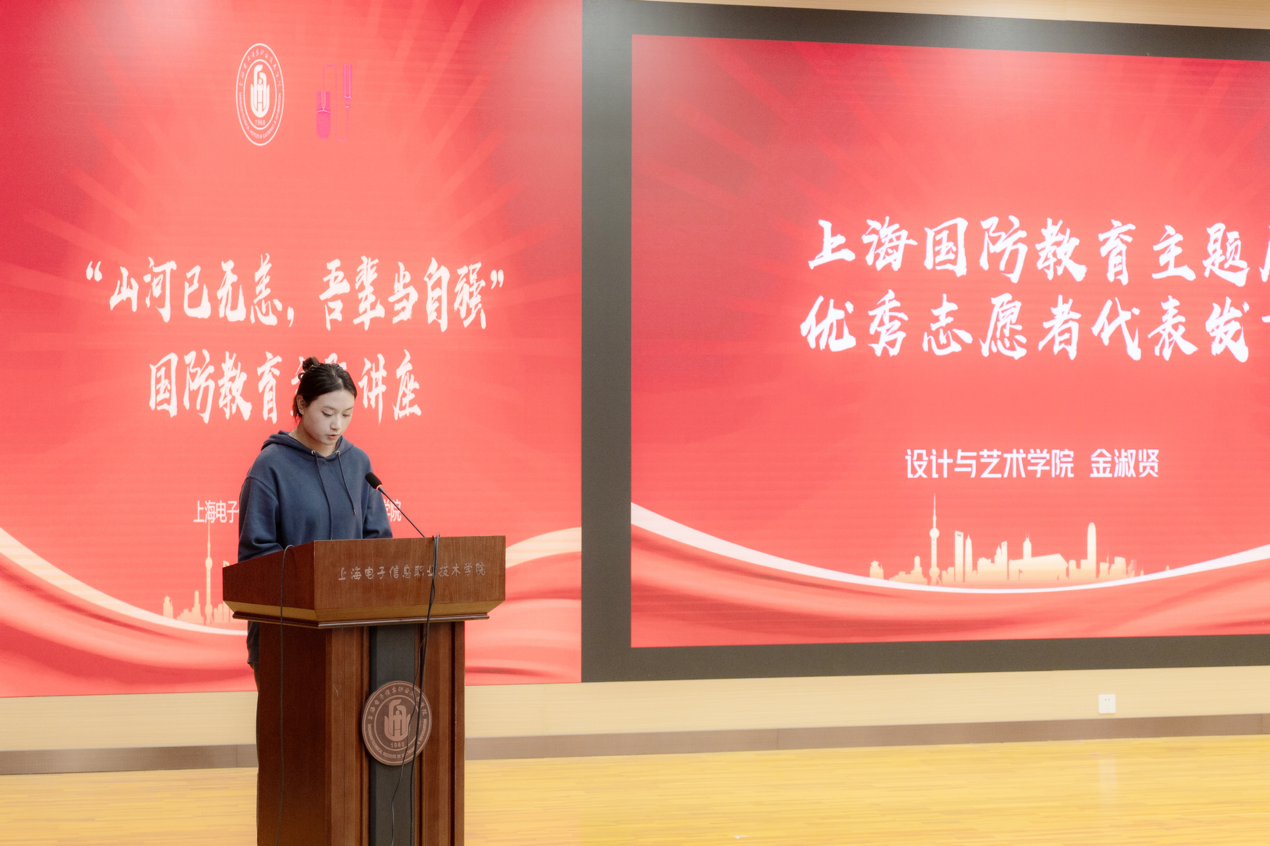 活动中,高晓昧回顾了“踔厉奋发强国防,勇毅前行向复兴”上海全民国防教育主题展志愿者的青春风采,优秀志愿者代表金淑贤同学进行发言。金淑贤同学呼吁大家积极投身志愿服务活动,延续对志愿服务的热爱,努力成长为自己期待的模样。