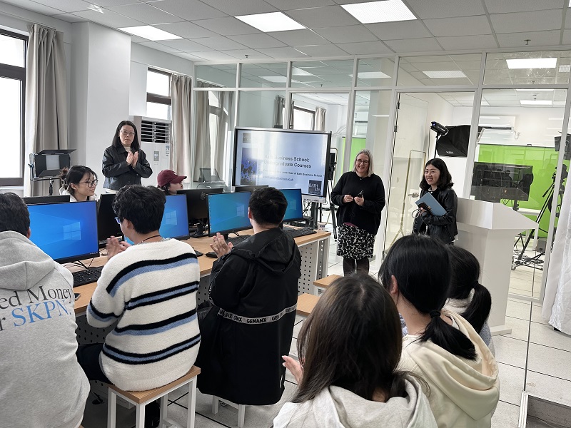 巴斯斯帕大学商学院院长波利·德比希尔(Polly Derbyshire)分别为通信与信息工程学院与经济与管理学院的学生讲授了一堂精彩纷呈的课程,学生们认真聆听,积极互动,受益良多。(供稿:校办(国交中心))