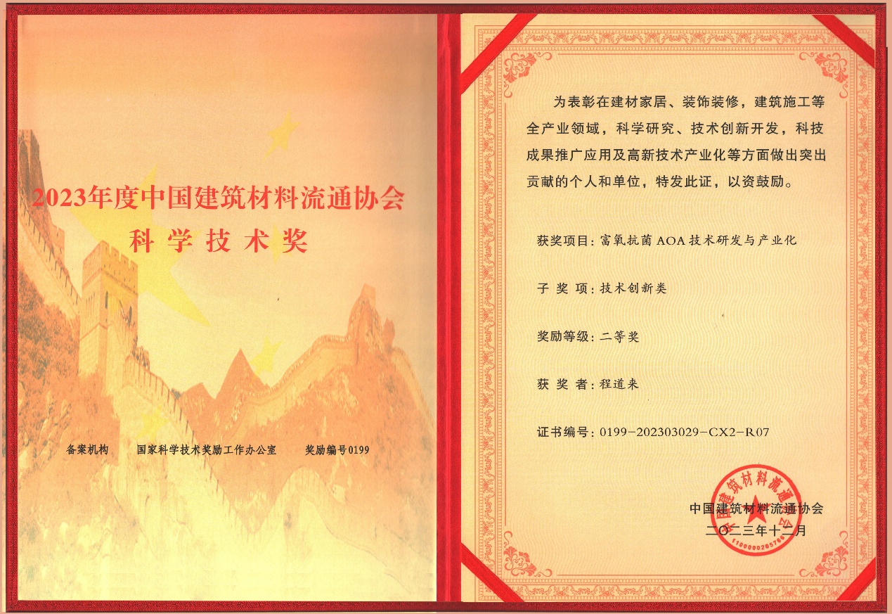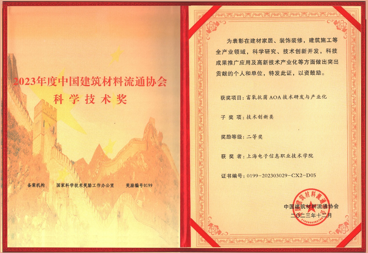 12月2日下午,2023年中国建筑材料流通协会科学技术奖颁奖大会在北京全国人大会议中心隆重召开。我校中德工程学院程道来教授参与联合申报的“罗沄富氧抗菌AOA技术研发与企业转化”获得2023年度中国建筑材料流通协会科学技术奖二等奖。