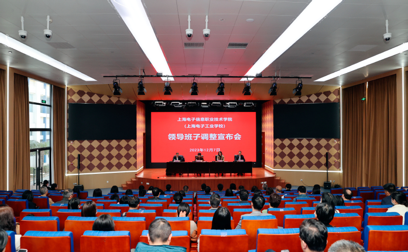12月7日下午,我校在普陀校区报告厅召开领导班子调整宣布会。市教卫工作党委组织干部处处长史悦宣读有关干部任职的决定并介绍相关情况,傅建勤同志任上海电子信息职业技术学院(上海电子工业学校)党委书记。市教卫工作党委一级巡视员郑锦出席并讲话。党委副书记、院长赵坚主持会议。