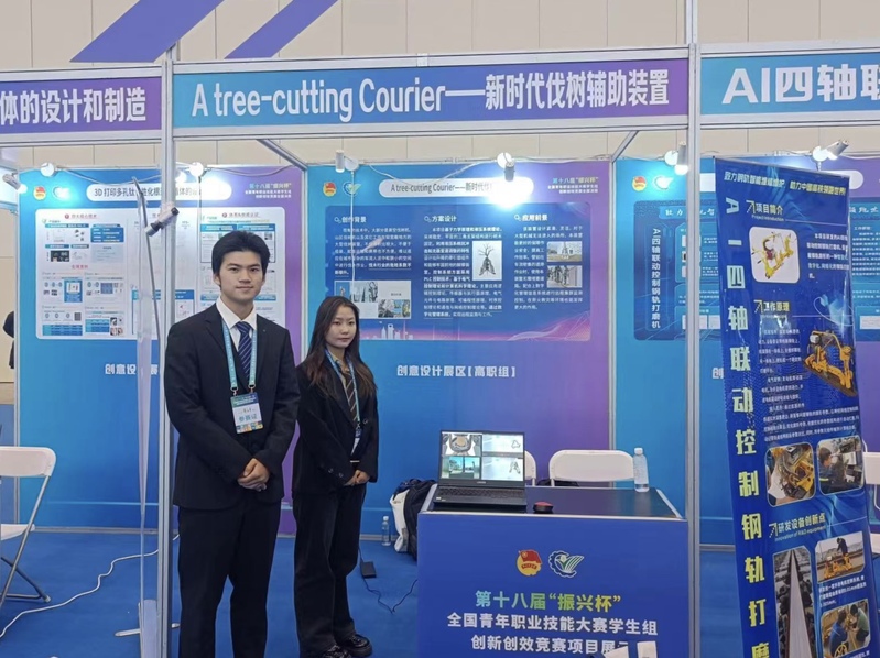 11月11日,由共青团中央、人力资源和社会保障部主办的第十八届“振兴杯”全国青年职业技能大赛学生组创新创效竞赛全国决赛落下帷幕。由机械学院专任教师蒋姗姗、王顺利指导,王明浩、陈宁、崔帅、米轩德、朱得、王浩添等同学设计的《A Tree-cutting Courier——新时代伐树辅助装置》项目在241个决赛项目的激烈角逐中脱颖而出,荣获高职创意设计类铜奖。