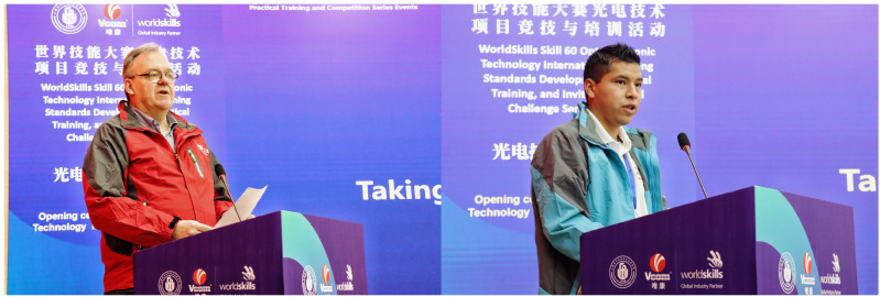 12月14日,由我校和唯康教育公司主办的世界技能大赛光电技术项目国际邀请赛在奉贤校区开赛。世赛罗马尼亚官方代表米哈伊尔·卡扎库(Mihail Cazacu)、世赛巴巴多斯技术代表达里奥·沃尔科特(Dario Walcott)、菲律宾专家JUNJON SANTUYO、世界技能大赛光电技术项目经理陈屹宁、全球培训中心秘书长黄婧洁、我校副院长方林中等出席开幕式。来自中国、奥地利、巴西、牙买加、日本、墨西哥、韩国等14支队伍参赛。