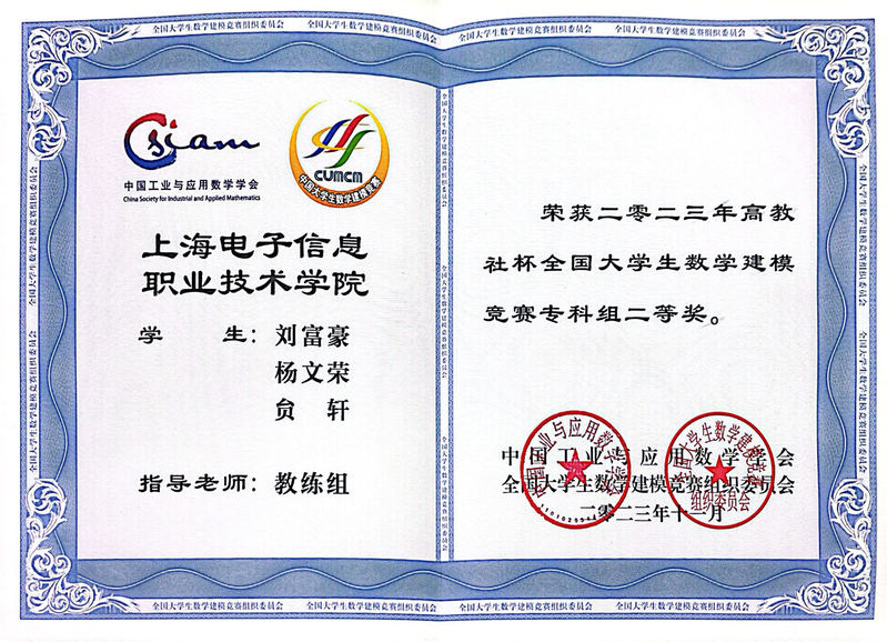 日前,全国大学生数学建模大赛颁奖大会在复旦大学礼堂隆重举行。我校学生在此次大赛中成绩喜人、表现出色,荣获全国二等奖2项,上海市一等奖2项、二等奖3项、三等奖1项。据了解,获奖等级、获奖数量均居上海市职业院校第一。