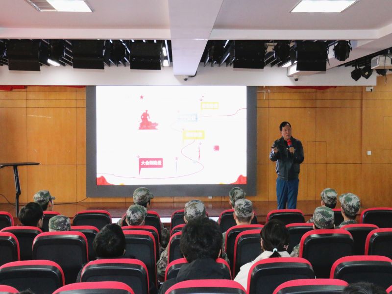空军航空大学原飞行学员旅政委(空军大校)高文山为三所高校退役大学生士兵代表作题为《红军长征人类军事史上的传奇》的国防教育专题讲座。(供稿单位:人民武装部)