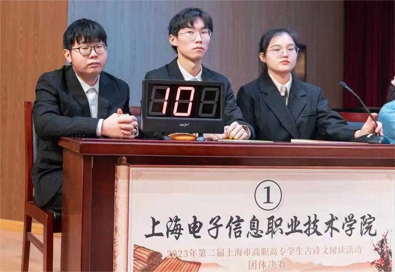比赛旨在提升对古诗文理解与鉴赏能力,弘扬中华优秀传统文化,培养学生文化素养,展现青春风采。初赛在2023年10月启动,由各校完成遴选;复赛于11月下旬举行,由各校选出200名学生在线上进行答题,人均成绩排名前八的院校进入现场团队决赛。上海电子信息职业技术学院、上海济光职业技术学院、上海科创职业技术学院、上海城建职业学院、上海南湖职业技术学院、上海行健职业学院、上海出版印刷高等专科学校、上海现代化工职业学院等8支代表队在现场进行了激烈比拼。诵读环节,高职学子们各展身手,弹唱、吟咏、朗诵……丰富精彩的表演赢得了阵阵掌声。