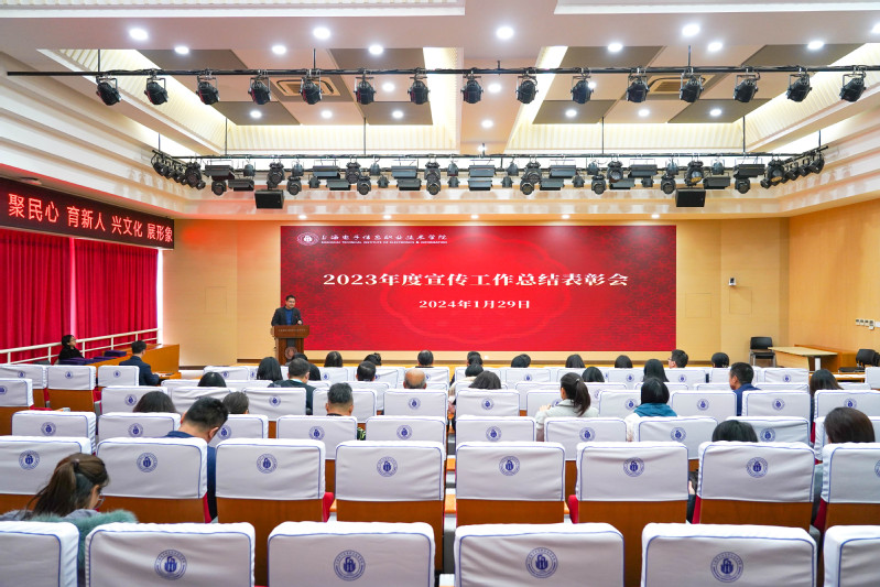 1月29日,学校2023年宣传工作总结表彰大会在C108报告厅召开。校党委书记傅建勤,党委副书记、副院长张涛,二级党组织书记,各部门宣传员,获奖教师代表共计70余人出席会议。会议由党委宣传部副部长陈卫炉主持。