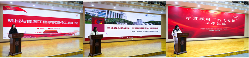 优秀通讯员代表王晨怡、新媒体年度最具活力奖代表张秀丽、学习强国“先进支部”代表卢高禾等三位老师作典型工作经验分享。