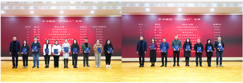 大会表彰了2023年度来涌现的先进集体和个人。大会发布了“学思践悟强本领,笃志奋斗建新功” 师生理论宣讲微课程,优秀通讯员,年度最具活力奖(提名奖),学习强国“先进支部”“学习标兵”“学习达人”荣誉称号等获奖名单。张涛一一为获奖教师进行颁奖。