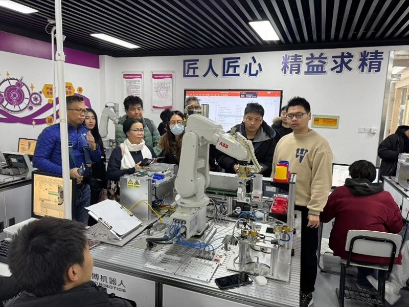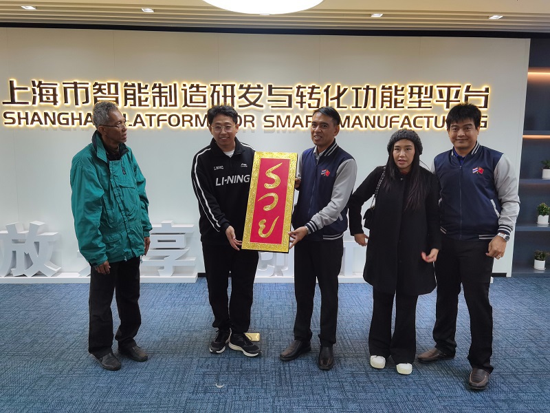 在沪期间,泰国代表团在机械学院与国交中心老师们的陪同下,先后参访了上海智能制造研发与转化功能型平台、上海捷勃特机器人有限公司、上海飒智智能科技有限公司、上海新时达电气股份有限公司、权星智控系统工程(上海)股份有限公司。实地了解了目前工业机器人方面的技术发展与应用,调研了当前行业人才素质要求及技能需求,与企业负责人洽谈了校企合作事宜。在飒智智能和权星智控两家公司,三方举行了泰国留学生实习基地揭牌仪式。实习基地的落成为泰国留学生搭建了实践实训平台。