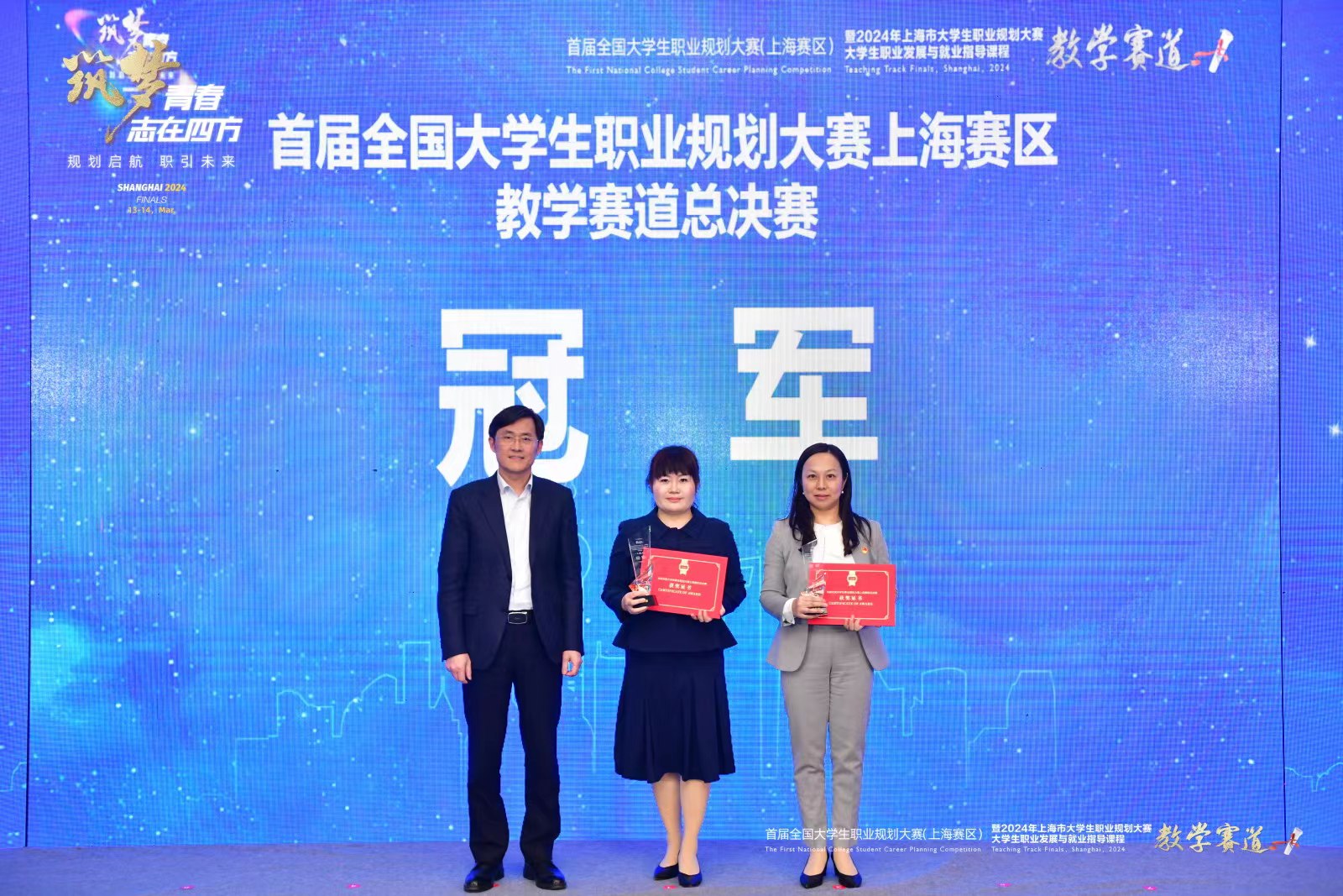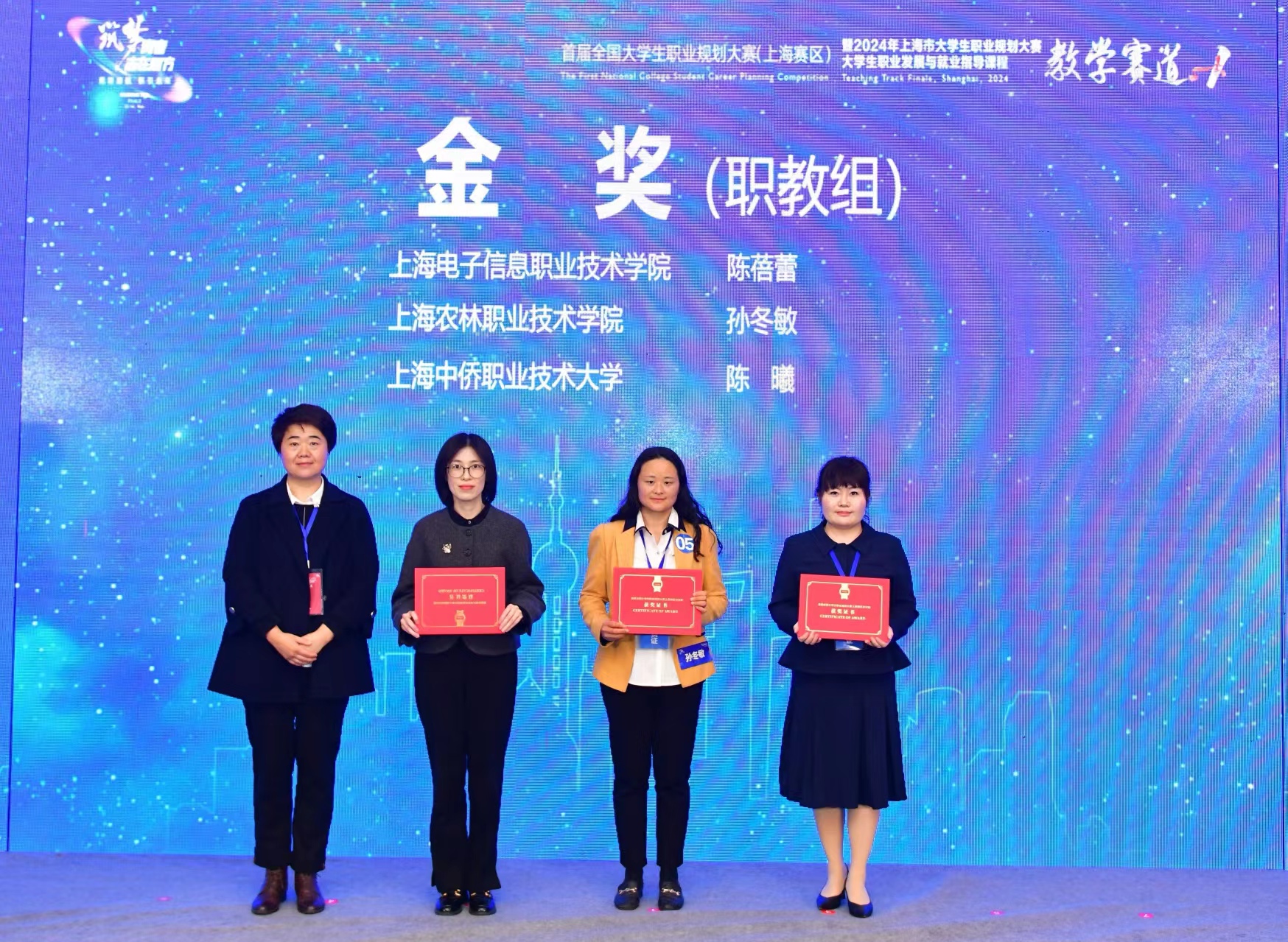 3月14日晚,上海市教育委员会主办的首届全国大学生职业规划大赛上海赛区教学赛道总决赛在华东师范大学顺利闭幕。上海市教育委员会副主任王浩出席闭幕式并讲话。我校经济与管理学院教师陈蓓蕾获上海赛区职教组冠军和金奖。