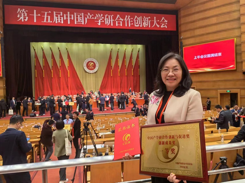 在颁奖典礼上,王向红教授作为该奖项的第一完成人,自信而庄重地登台领奖。她的出色表现不仅代表了学校在科技创新方面的卓越成就,更展现了学校高层次人才在产学研合作中的引领和担当。