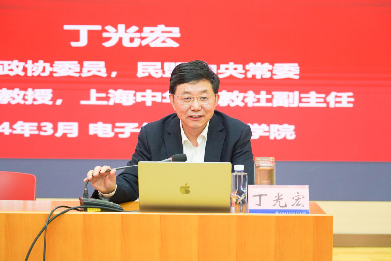 4月1日,学习贯彻习近平总书记重要讲话精神和两会精神辅导报告会在C108报告厅举办。全国政协委员、民盟中央常委、复旦大学教授丁光宏应邀来校作《全国人民代表大会、中国人民政治协商会议第十四届二次会议参会汇报》辅导报告。机关党总支中层干部及机关下属各支部教师代表参会。报告会由校党委书记傅建勤主持。