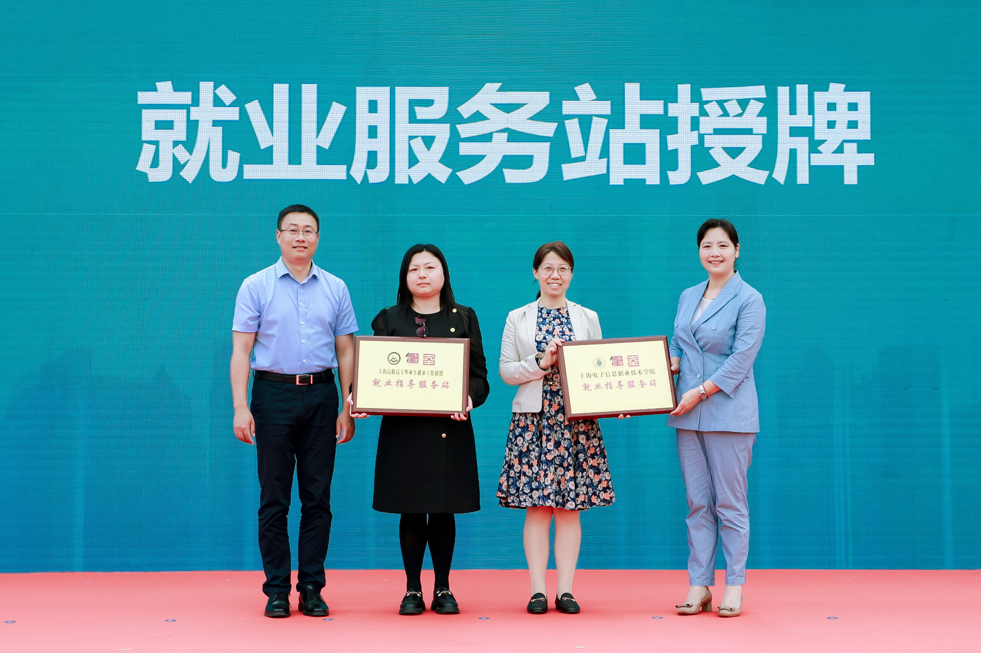 王捷、汤琮璀向上海电子信息职业技术学院、上海农林职业技术学院授牌上海高职高专院校就业指导服务站。