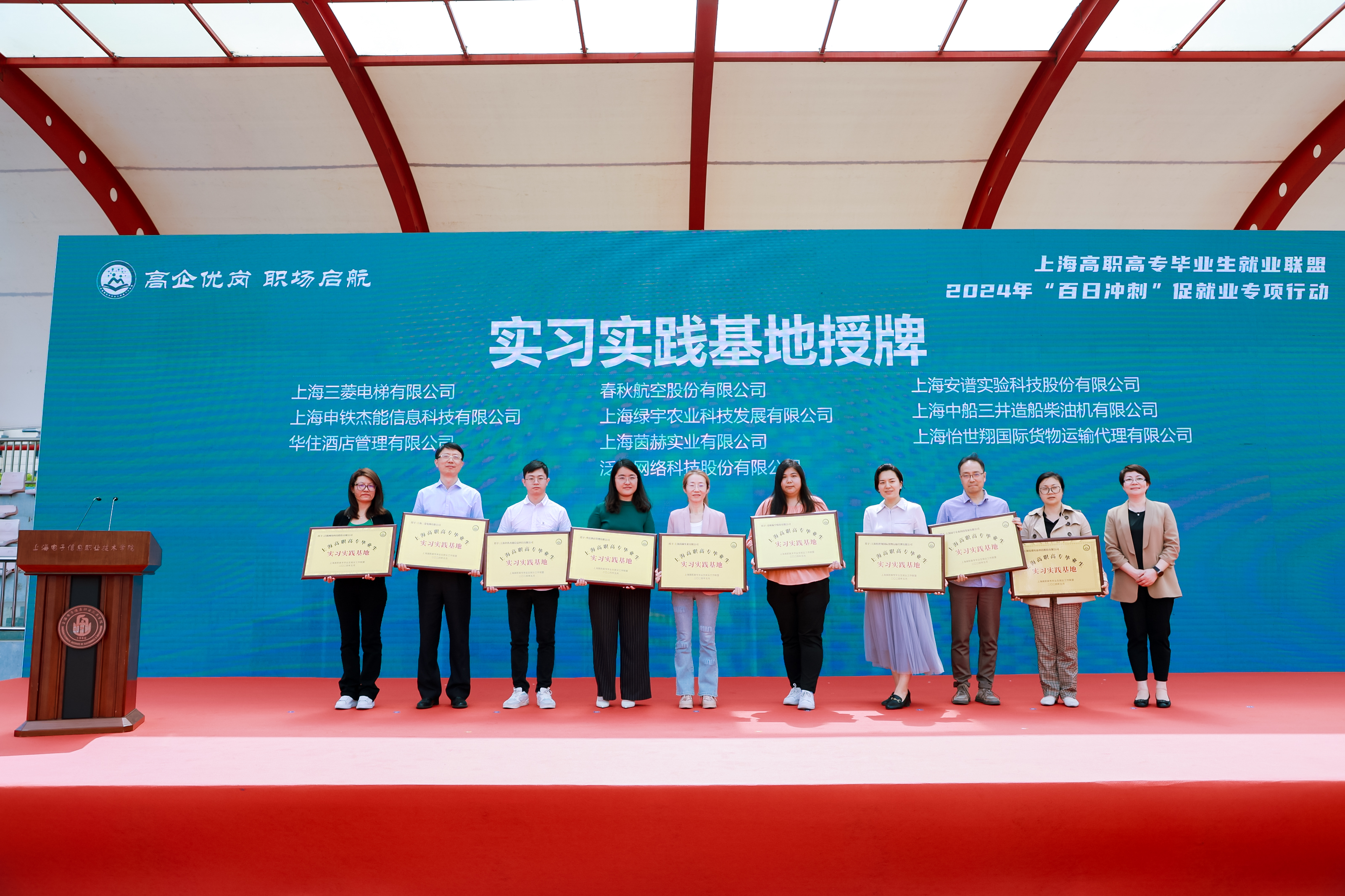 赵晓云为泛微网络科技、三菱电梯、申铁杰能信息、华住酒店等10余家单位授牌上海高职高专毕业生实习实践基地。