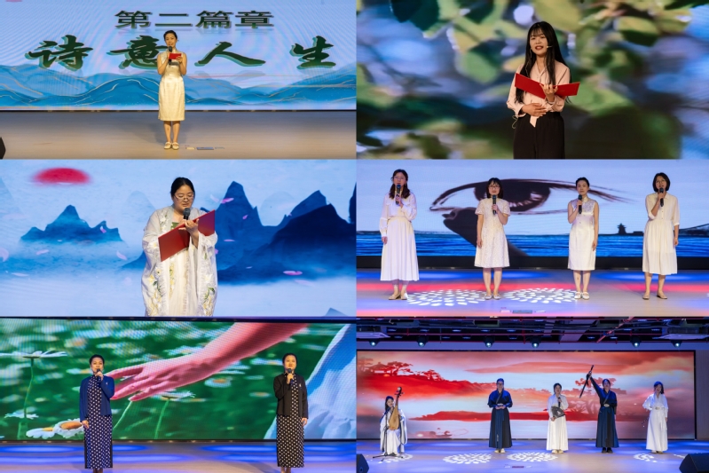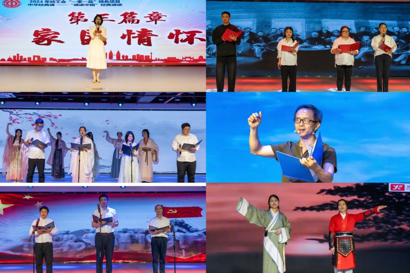 在经典诵读展示评比环节,来自各二级工会的教职工纷纷登台献艺。从《弟子规》的谆谆教诲,到《再别康桥》的依依惜别;从《拾馒头的父亲》的感人至深,到《青春中国》的铮铮宣言……每一篇作品都引发了现场观众强烈共鸣。临近结束,活动以《盛世华章》为题,师生身着汉服尽情展示汉服之美。