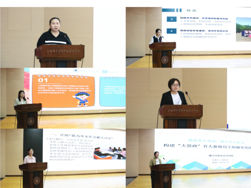 会上,辅导员“9+x”思想政治领航、学生发展指导、心理健康教育、资助育人实践、危机事件处置、辅导员队伍建设等6个团队骨干、带头人立足团队自身建设的实际情况,聚焦“我为申本作贡献”主题, 围绕工作理念、团队建设、工作进展、成果特色凝练、下一步目标计划等方面进行分享汇报,展示了辅导员“9+x”专业化发展团队在学生工作实践中发挥的重要作用,不断为推动学校申本攻坚增添动力。