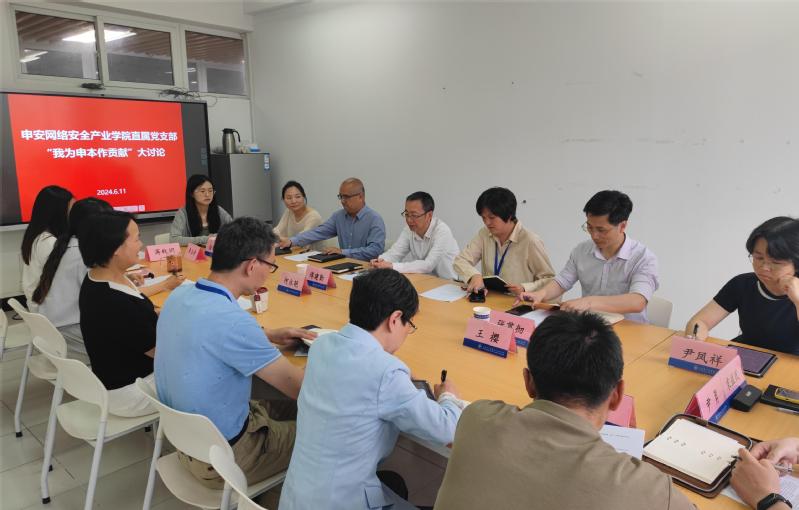 为深化党纪学习教育,进一步凝聚共识,强化担当作为,激发全体教职工积极性和创造力,共同为学校申本工作贡献智慧和力量,在前期分层分类讨论的基础上,6月11日,申安网络安全产业学院直属党支部组织开展“我为申本作贡献”大讨论汇总交流。学校党委书记傅建勤出席并总结讲话,交流活动由该学院支部负责人主持。