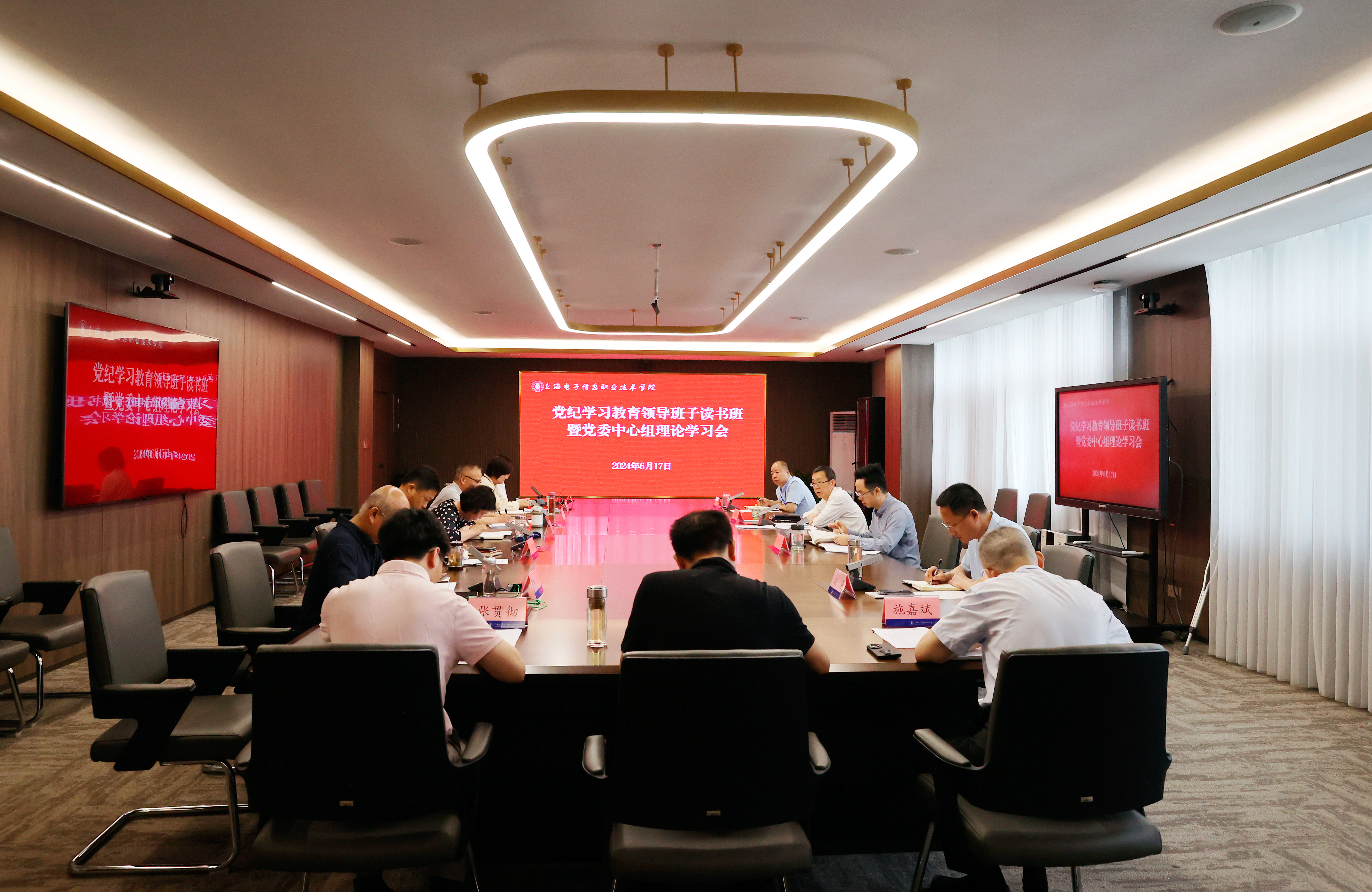 6月17日上午,学校党纪学习教育领导班子读书班暨党委中心组理论学习会在奉贤校区B205会议室举办。会议旨在深入学习领会《中国共产党纪律处分条例》的内涵要义和实践要求,围绕工作纪律、生活纪律开展专题研讨,强化实的导向,抓好全面覆盖,更好引导党员干部起而行之、干在当下,切实把党纪学习教育成效转化为奋力一跳的干劲,交出勇担使命的答卷。学习会由学校党委书记傅建勤主持。