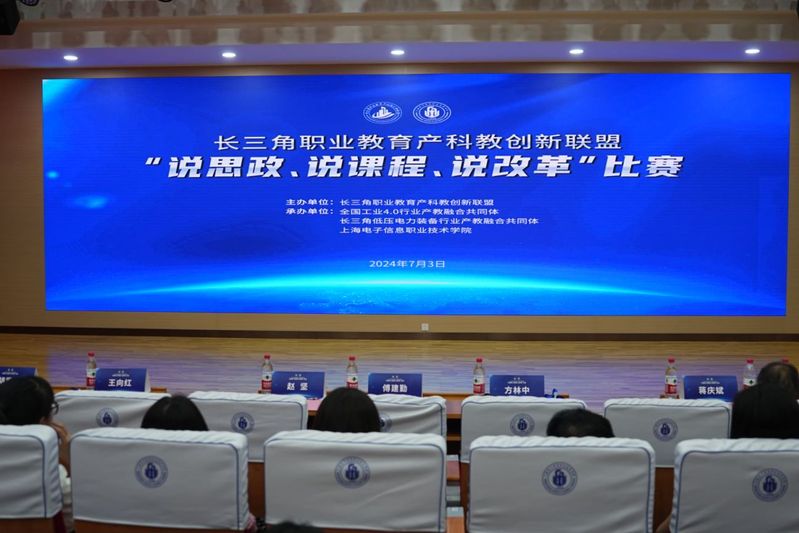 为深入贯彻落实中共中央办公厅、国务院办公厅《关于深化现代职业教育体系建设改革的意见》、上海市教育委员会《关于上海高等职业教育高质量发展的十条措施》等文件精神,落实立德树人根本任务,推进产教融合、科教融汇全面落实并向纵深发展,深化专业内涵建设,7月3日,由长三角职业教育产科教创新联盟主办,全国工业4.0行业产教融合共同体、长三角低压电力装备行业产教融合共同体、上海电子信息职业技术学院共同承办的长三角职业教育产科教创新联盟“说思政、说课程、说改革”比赛在奉贤校区成功举办。比赛由长三角职业教育产科教创新联盟副理事长兼秘书长、上海电子信息职业技术学院科协副主席王向红教授主持,来自全国42所职业院校150余名教师进行了全程观摩。