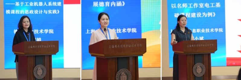 “说思政”赛项:德州职业技术学院陈丽娟《专业技能与社会责任:培养电气工程领域的数字工匠——基于工业机器人系统建模课程的思政设计与实践》、上海农林职业技术学院李嘉《立信息锚点展德育内涵》、上海电子信息职业技术学院刘小斌《思政引领课堂教学,盐溶于汤德育双馨——以名师工作室电工基础课程建设为例》。