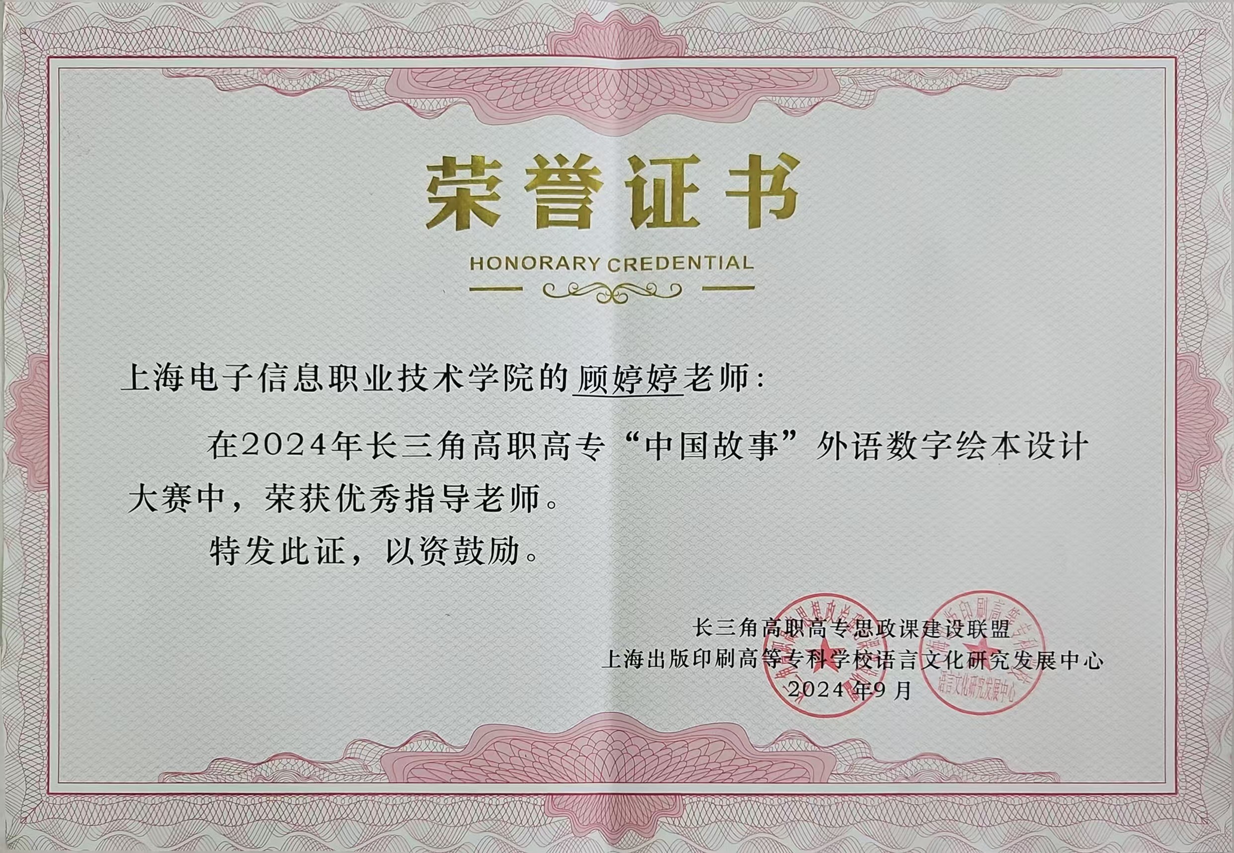 长三角高职高专“中国故事”外语数字绘本大赛于近日圆满结束。我校外语学院德语专业的两个学生团队表现出色,荣获一等奖一项,三等奖一项,顾婷婷老师获优秀指导老师奖。