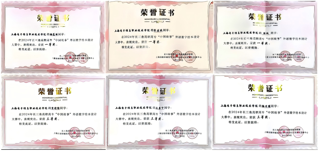 大赛设英语数字绘本设计及小语种数字绘本设计两大赛道,覆盖长三角地区众多高校。经过初赛和决赛,13所院校的40余组作品入围决赛。我校选手的参赛作品中脱颖而出,其中陈城、杨蕊昕和李诺依团队创作的《百鸟朝凤》荣获小语种赛道一等奖,杨诗琪、黄欣怡、王粟宁团队创作的《九色鹿》荣获小语种赛道三等奖。两支团队的作品均展现出了独特的艺术风格和对中华优秀传统文化的新颖诠释,结合外语应用能力和职业技能,巧妙地将中华传统文化的哲学思想、人文精神、价值理念和道德规范融入现代艺术语言之中并进行跨文化传播。