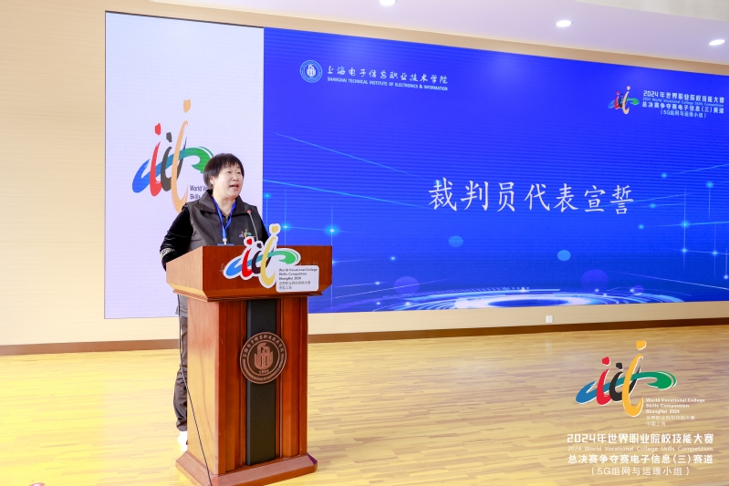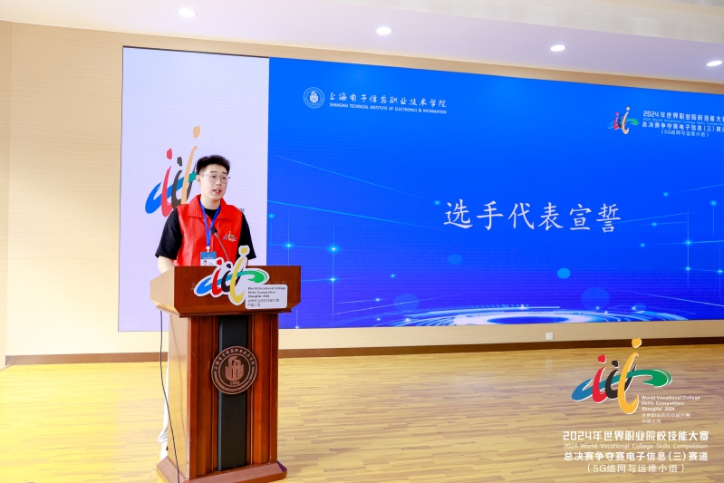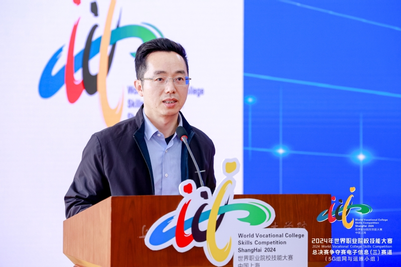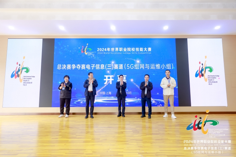 技炫青春,能创未来。10月25日,2024年世界职业院校技能大赛总决赛争夺赛电子信息(三)赛道 (5G组网与运维小组)在我校奉贤校区隆重开幕。上海市教育委员会职教处处长马建超、上海市教育委员会教育技术装备中心副主任赵晓伟、裁判长孙青华、监督仲裁长李杰,校党委副书记、院长赵坚、副院长方林中,各参赛队领队、指导老师、参赛选手,赛项专家、裁判、仲裁出席开幕式。开幕式由方林中主持。