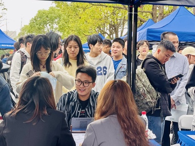 招聘会现场熙熙攘攘,来自各个学院、不同专业的学生们手持简历,在企业摊位前驻足,仔细阅读招聘信息、了解岗位需求,并积极地与企业招聘人员进行沟通交流,主动询问企业概况、职业发展以及薪资待遇等,现场气氛异常热烈。