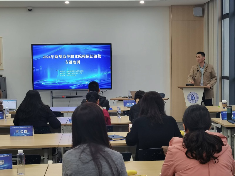 11月1日,第二届上海新型高等职业院校依法治校专题培训会在我校举办。培训由上海市教育委员会政策法规处主办,我校承办。上海市教育委员会政策法规处处长郁能文、副处长李进付、学校副院长窦争妍、上海理工大学人事处副处长黄平、上海工程技术大学学校办公室副主任戴彬等领导出席培训活动。上海建设管理职业技术学院、上海闵行职业技术学院、上海现代化工职业学院、上海科创职业技术学院、上海南湖职业技术学院、上海浦东职业技术学院、宣城市机械电子工程学校等学校40余人参加培训。