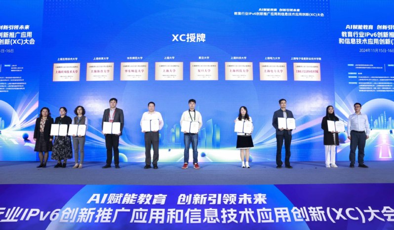 11月15日, AI赋能教育,创新引领——教育行业IPv6创新推广应用和信息技术应用创新(XC)大会及其授牌仪式在上海大学举行。学校荣获 “2024上海教育行业信创应用示范单位”称号。