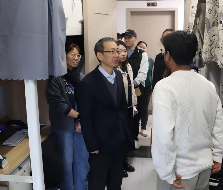 傅建勤与同学亲切交谈,详细询问他们的学习进展、职业规划及日常生活情况。此外,他还仔细聆听了学生对于学校发展的看法和建议,勉励他们珍惜在校时光,勤奋学习,追求卓越。