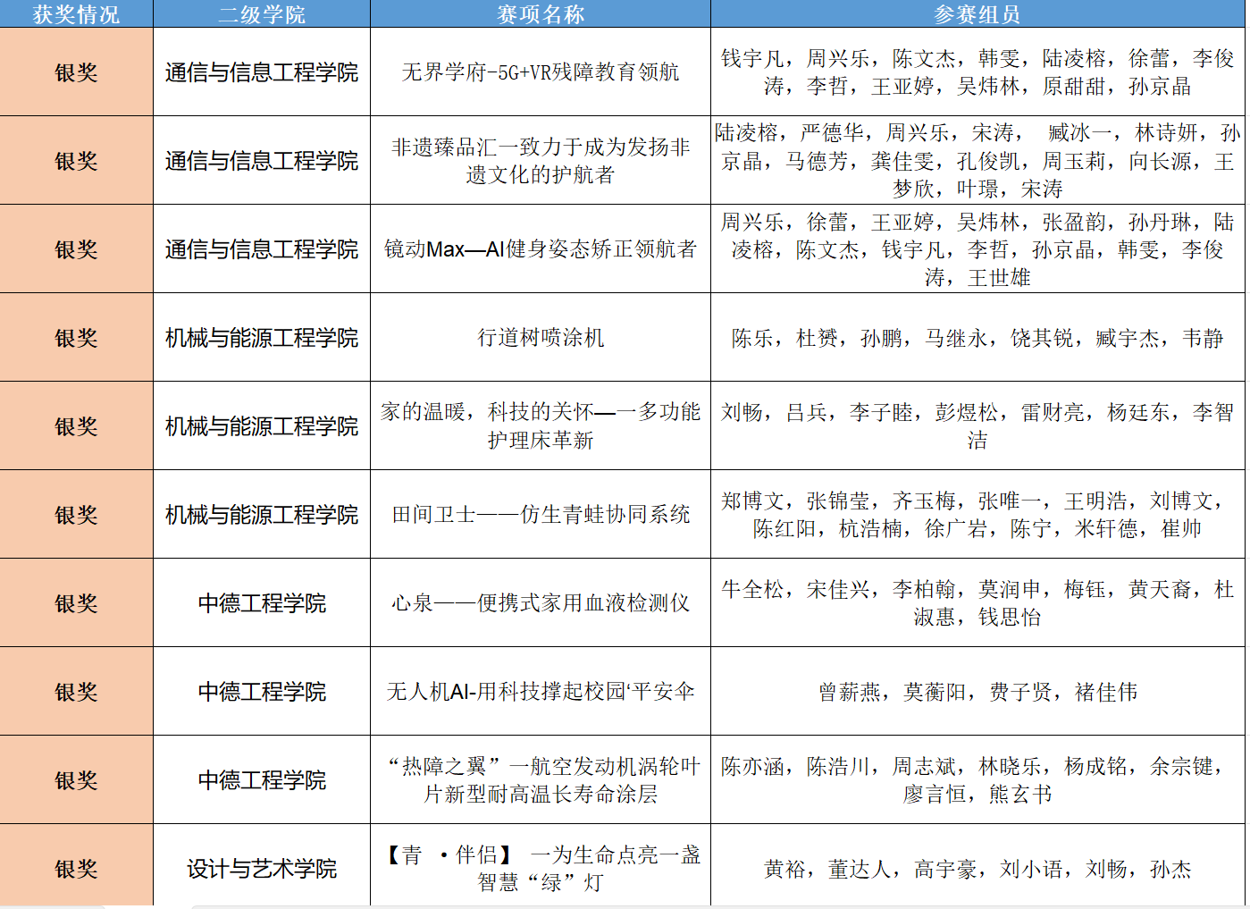我校对此次大赛的备赛参赛工作给予了高度重视。自4月份起,学校启动了系列落地宣传及宣讲活动,进入5月份,组织了多场备赛培训课程,至6月份,举办了校级选拔赛事。在各相关二级学院大力支持下,我校最终提交了4000余个项目参赛,其中电子技术与工程学院荣获校级选拔赛“先进集体”称号。经过市级复赛、市级决赛网评、线下路演答辩以及网上公示等环节,我校共有41个项目在市级职教赛道项目中获奖,其中金奖1项、银奖10项、铜奖19项和优胜奖11项。此外,我校还荣获“优秀组织单位”称号。