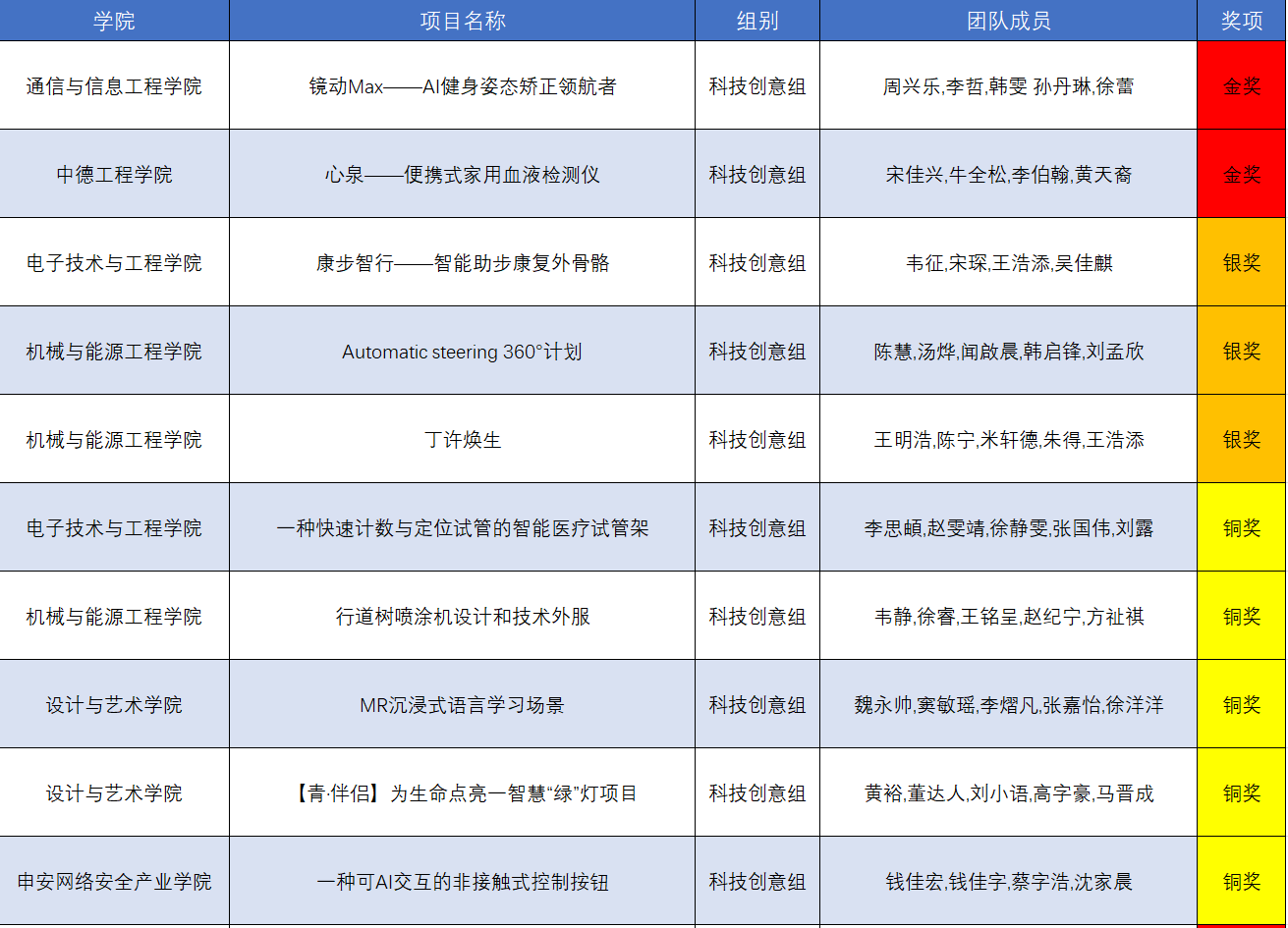 大赛于今年9月启动以来,共吸引3000多名职业院校学生踊跃参与,经校级初赛、市级复赛,共有来自全市61所职业院校的105个项目脱颖而出,进入市级决赛。比赛过程中,我校参赛团队在指导老师的带领下通过项目介绍、现场演示和互动问答等方式,全面展示了项目的创新点、技术难度和市场前景,赢得了评委的高度评价和认可,4个团队突出重围荣获金奖。