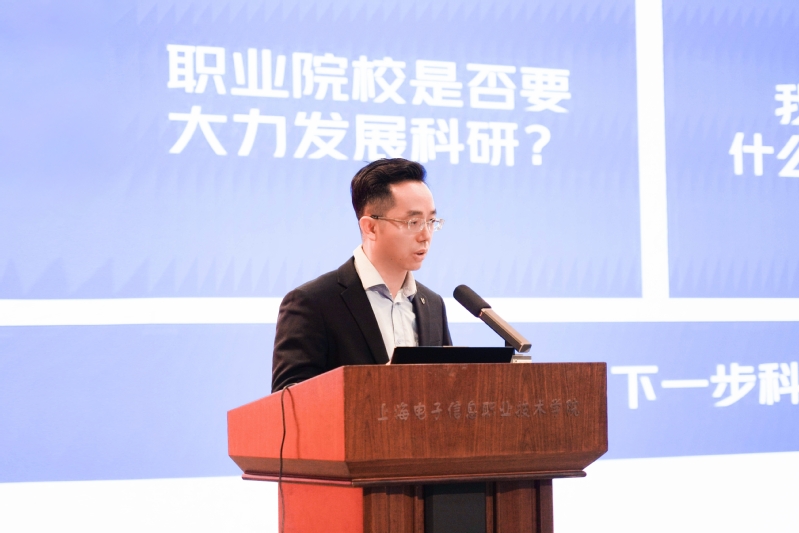 在大会交流环节,中德工程学院副院长黄婷婷、经济与管理学院院长宋长海、中德工程学院学生管理办公室主任姚一平、电子技术与工程学院乐玉平老师、机械与能源工程学院王顺利老师、通信与信息工程学院姚凤薇老师先后发言。他们分别从二级学院科研工作体系构建及特色凝练、辅导员如何申报高级别科研项目、高质量科研成果发表、科技创新与科普工作、企业技术服务与院士专家工作站建设等方面,毫无保留地分享了经验,提出高职院校应用型科研工作多样化实践路径,为学校科研工作开拓新思路、注入新活力。