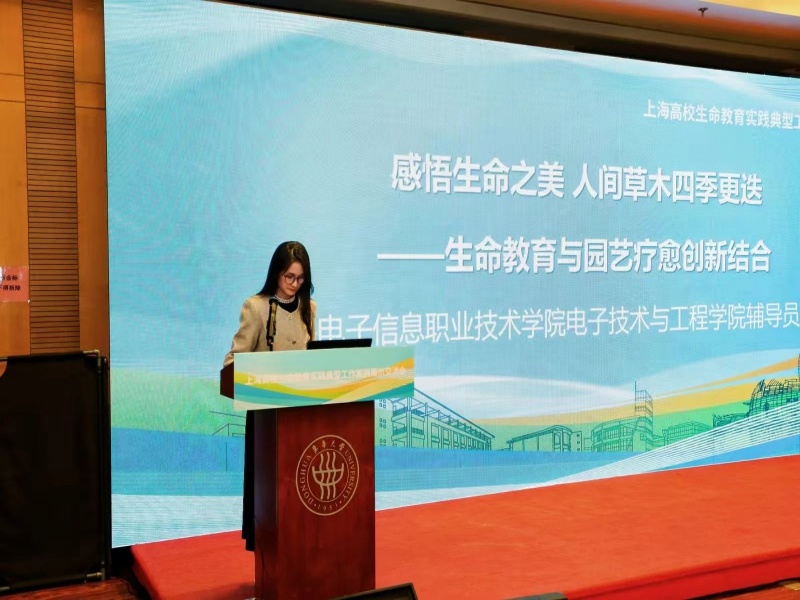 会议收录了来自21所高校的38篇生命教育实践活动工作案例,同时遴选出8篇典型案例。我校电子技术与工程学院“芯” 动力二级心理工作站张竹、杨烨萍老师的案例《基于“345”多维育人体系的生命教育与园艺疗愈创新实践》、机械与能源工程学院械忧坊二级心理工作站赵会格、倪娜老师的案例《“美润心田,向阳而生”心绘卡主题活动——让“生命之光”成为技能人才的心支点》成功入选2024年上海高校生命教育实践活动工作案例。其中,《基于“345”多维育人体系的生命教育与园艺疗愈创新实践》被选为典型案例,张竹老师受邀作典型案例分享和展示交流。