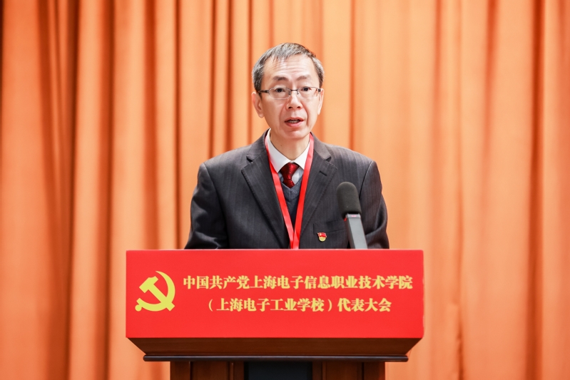党委书记傅建勤同志代表中国共产党上海电子信息职业技术学院(上海电子工业学校)上一届委员会向大会作题为《职教强国勇担当 服务贡献作引领 为建设上海特色、国内一流、国际水平的职业技术大学而努力奋斗》的报告。