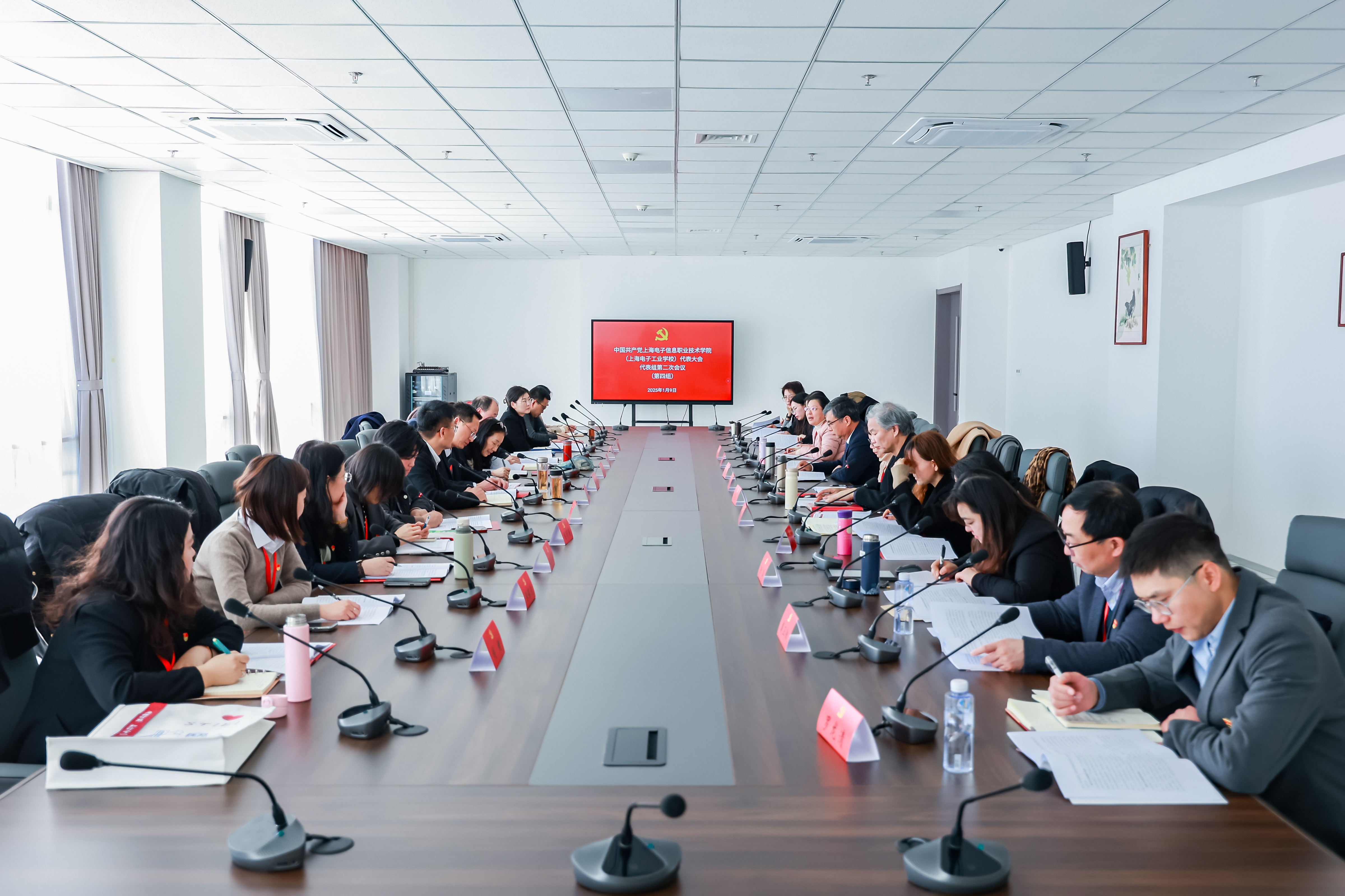 1月9日上午,在庄严的国歌声中,中国共产党上海电子信息职业技术学院(上海电子工业学校)代表大会在奉贤校区新实训大楼报告厅开幕。这是在党和国家以教育强国建设支撑引领中国式现代化,上海市全面落实高等教育“两个先行先试”新形势下,在学校创建职业本科技术大学、“十四五”收官“十五五”谋篇关键时期召开的一次十分重要的会议。