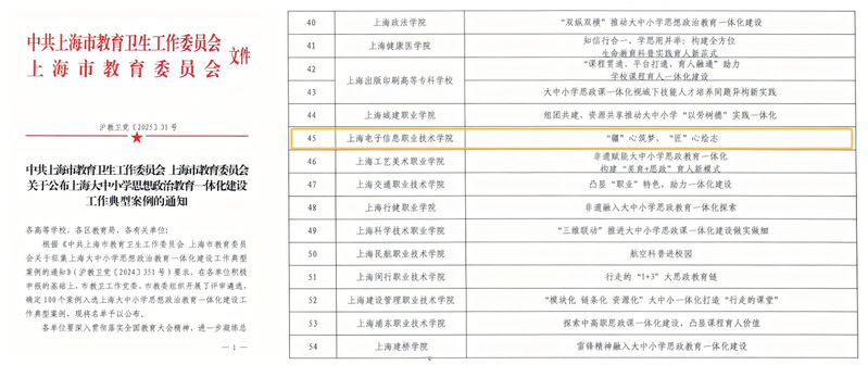 近日,中共上海市教育卫生工作委员会、上海市教育委员会公布了大中小学思想政治教育一体化建设工作典型案例名单。经学校推荐、资格审核、专家遴选等程序,我校机械与能源工程学院申报的《“疆”心筑梦,“匠”心绘志》工作案例成功入选。
