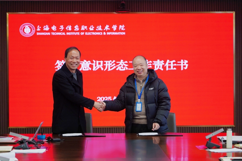 会上,丁磊与二级党组织书记代表、通信与信息工程学院党总支书记江龙签订《2025年度意识形态工作责任书》。