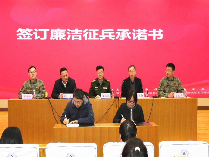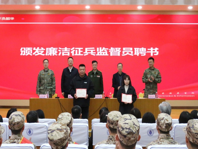 会上,与会领导为学校2024年度征兵工作先进集体和个人颁发奖牌和证书,为学校廉洁征兵监督员代表颁发任职聘书。机械与能源工程学院党总支书记米红林、经济与管理学院党总支书记吴淑芳作为二级学院代表签订廉洁征兵承诺书。学校武装部副部长吴奇峰宣读学校2025年上半年预定新兵名单及分配情况。