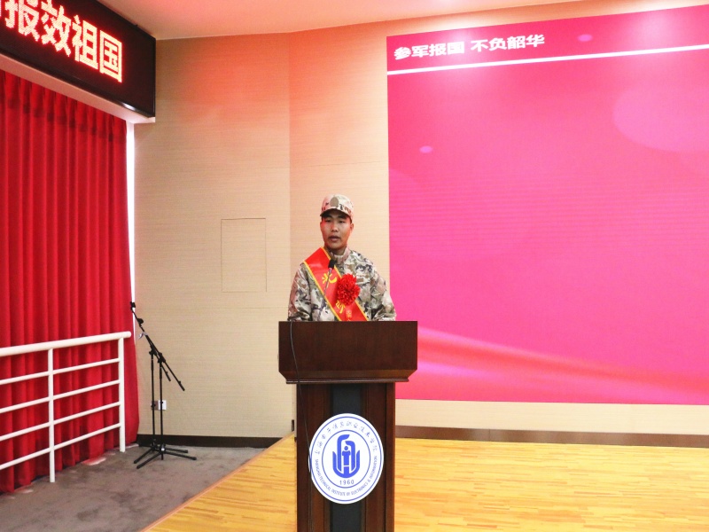 近日,学校2024年征兵工作总结暨2025年上半年新兵入伍欢送大会在奉贤校区C108报告厅隆重举行。奉贤区委常委、区人武部大校部长左仁华,学校党委书记傅建勤,学校党委副书记、副院长张涛出席大会,学校武装部负责人,二级学院党总支(直属党支部)书记、学生工作负责领导、学管办主任、辅导员,入伍新兵及家长代表参加欢送会。
