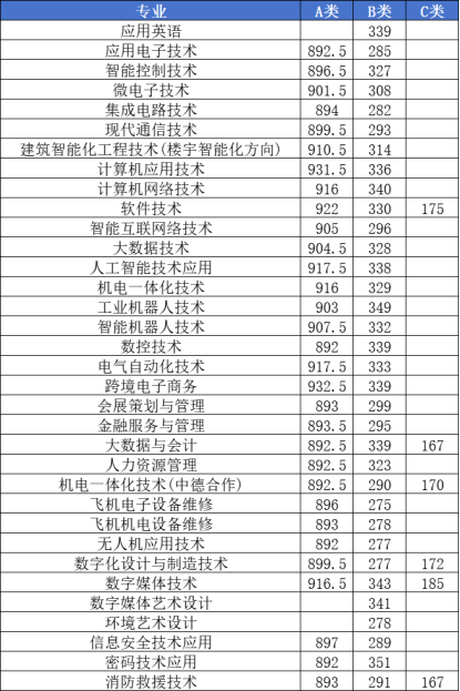 备注:A类考生录取最低分892分,B类普通类专业考生录取最低分275分(同分比较数学52分);B类艺术类专业考生录取最低分278分;C类考生录取最低分167分。