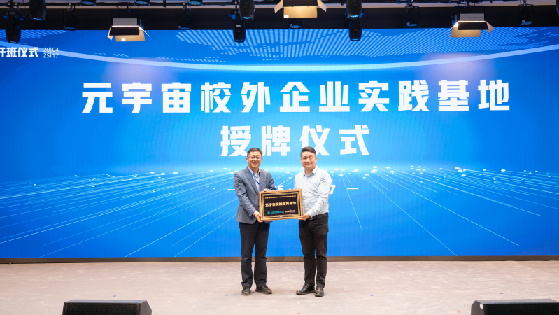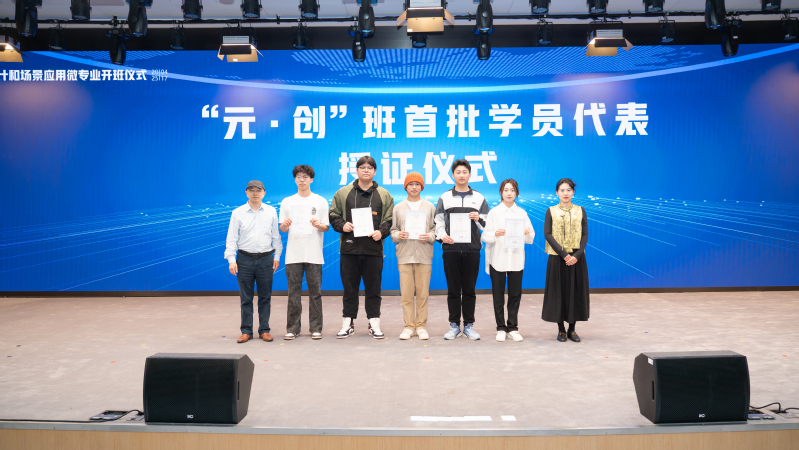 设计与艺术学院党总支书记、院长高晓昧简单介绍了本次开班仪式筹备的基本情况。元宇宙技术创新实验班负责人马溪茵详细介绍了本次元宇宙数字设计和场景应用微专业建设情况。在各位嘉宾的共同见证下,方林中、林迅、张波、丁永军、汤有为等校企代表按下启动按钮,标志着元宇宙微专业正式开班。方林中和汤有为共同为元宇宙校外实践基地授牌。教务处副处长周玉霞为企业导师颁发校外导师证书。设艺学院副院长周前程、赵莹为学员代表颁发学员证。专题讲座报告环节,张波、汤有为、丁永军分别作《“传承融合 创新”人工智能在视听图像领域的突破实践》《虚拟现实行业前景与应用探索》《元宇宙行业应用分享》专题报告。