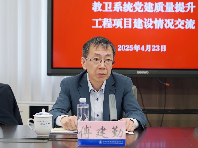 4月23日,学校召开教卫系统基层党建质量提升工程项目建设情况交流会,对第二轮“上海党建工作标杆院系”、“上海党建工作样板支部”、上海高校“百个学生样板党支部”、市教卫工作党委系统首批“组织员工作室”项目进行了评审与推进。来自上海市教师教育学院党建工作部、上海外国语大学组织部、上海电力大学组织部、上海交通大学医学院组织部的四位专家受邀担任评委。学校党委书记傅建勤出席并讲话。
