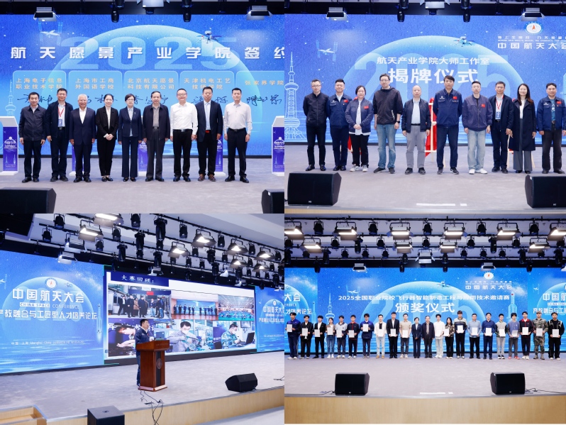 会上,还举行了航天愿景产业学院、中科航天产业学院签约仪式,上海电子信息职业技术学院航天产业学院大师工作室授牌仪式,总结了2025年全国职业院校飞行器智能制造工程与应用技术邀请赛赛事并颁奖。(摄影:杨璟楠)