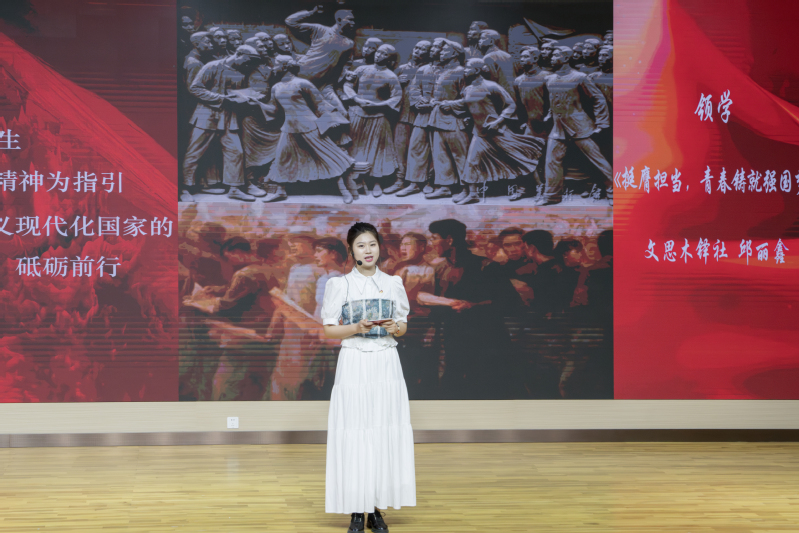 本次主题团日活动由“思想灯塔·领航星辉”“科创浪潮·破茧成翼”“实践沃土·知行耦合”“赓续青马·淬炼锋芒”四个篇章组成,通过青春思政课创新形式,把思政教育“小课堂”和社会“大课堂”融合起来,讲好新时代青年故事。来自文思木铎社的三位同学作为领学人,跟大家分享了《挺膺担当,青春铸就强国梦》《科技强国,青年“爬”“撞”并进》《青春“乡”伴,振兴有我》主题微宣讲。获得团课交流展示活动专项赛道——团支部书记讲思政课一等奖的经济与管理学院刘琪同学,带来了主题微团课《弘扬延安精神 传承红色基因》。