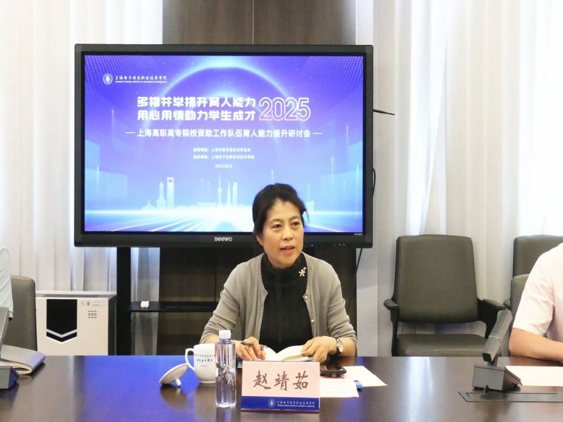 5月19日下午,由上海市教育委员会学生处指导,我校主办的上海高职高专院校资助工作队伍育人能力提升研讨会在奉贤校区举行。上海市教育委员会学生处一级调研员赵靖茹,学校党委副书记、副院长张涛,上海出版印刷高等专科学校学生处处长王伟、上海工艺美术职业学院学生处处长张哲、上海旅游高等专科学校学生处副处长(主持工作)薛佳、上海中侨职业技术大学学生处副处长杨芬菲等出席会议。