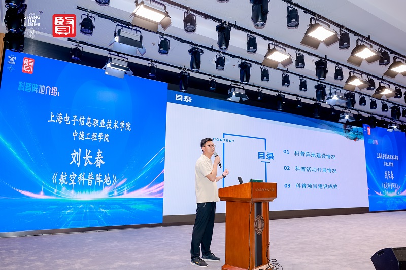 在热烈的掌声中,与会领导共启2025年奉贤科技节。中德工程学院程道来教授带来了《航空安全与飞机黑匣子》科普讲座,为观众揭开航空安全领域神秘面纱。