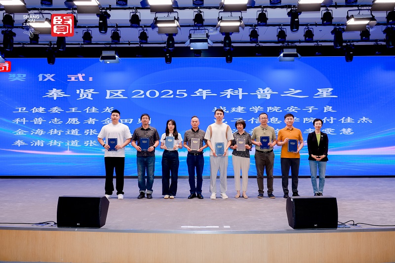 颁奖仪式上,隆重表彰了奉贤区2025年科普之星,以及在2025年上海市科学实验展演汇演、上海市第十二届科普讲解大赛中的获奖者及项目。